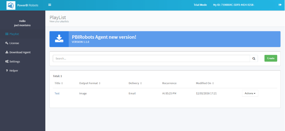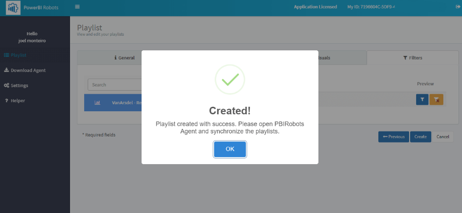 Your PowerBI Robots agent’s configuration is now complete! Your playlists can now be sent.