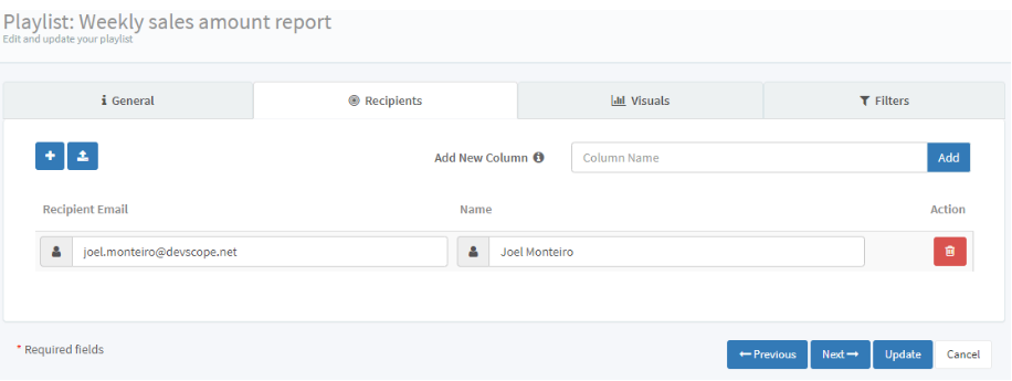 Keep in mind that this tab is only available when you select Email, SharePoint, or File System as your delivery method. Since one of PowerBI Robots‘ biggest advantages is the ability to share PowerBI reports with people outside your organization, you may add any emails or SharePoint libraries to your recipients. Just make sure you have the proper authorization to do it.