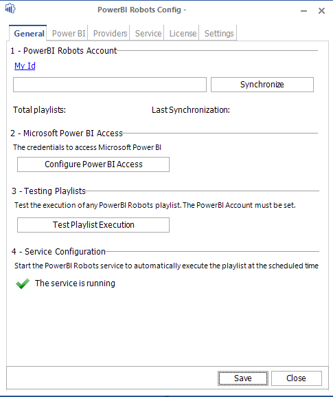 After setting up your playlists, you must install and configure the PowerBI Robots desktop agent and start the service. If you don’t do it, PowerBI Robots simply won’t work. This agent sets things up and synchronizes your playlists. It does not collect any information – everything is stored locally, on the user’s infrastructure. You can download the PowerBI Robots desktop agent on the web agent or by clicking this link.