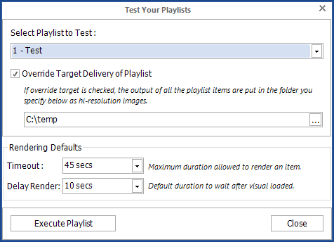 If you wish to, you can also test your playlists here. Click the “Test PBIRobots Playlist Execution” button, and the following window will pop up: