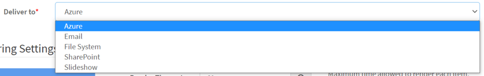- Open the PowerBI Robots web agent and create a new playlist. There will be a new option in the General tab under Deliver To: Azure.