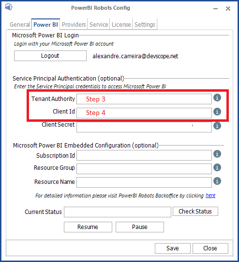 In this step, you will add PowerBI Robots to a specific security group in the Power BI tenant settings. Without API permissions, PowerBI Robots won’t be able to access your PowerBI workspaces.