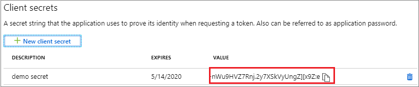 - After saving the client’s secret, its value will be displayed. Copy and paste this value in PowerBI Robots Agent because you won't be able to retrieve the key later. The key value is used alongside the application ID to sign in Azure Storage.