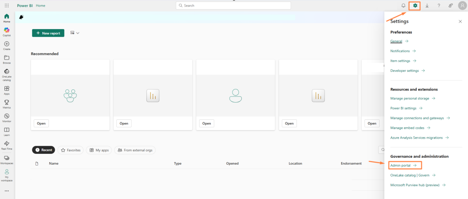 Go to Power BI Online, open "Settings" and select "Admin portal".